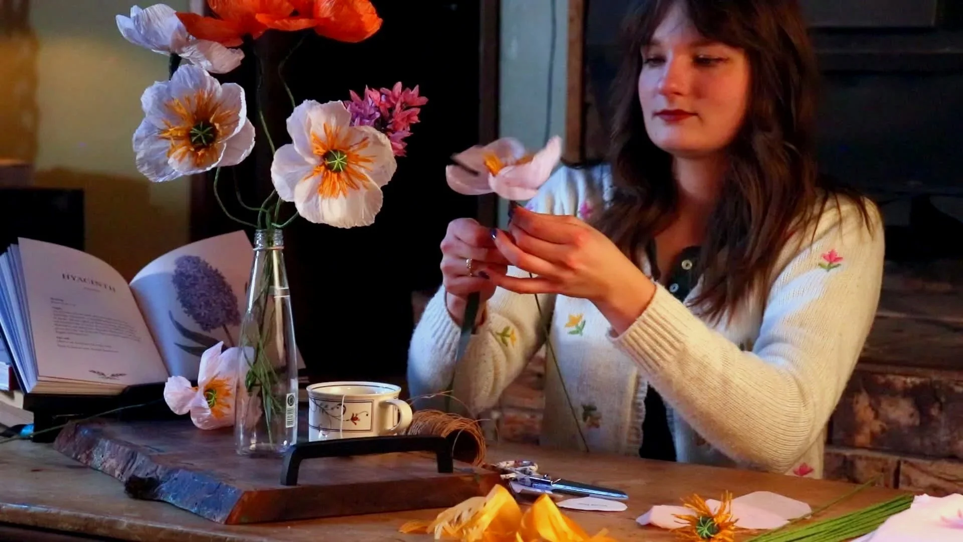 Furthermore, I was on a mission to create the most delicate and sweet flowers that would capture the light just right in the mornings, and reflect the house lamps gracefully in the evenings. Traditional flower making paper just didn’t cut it.